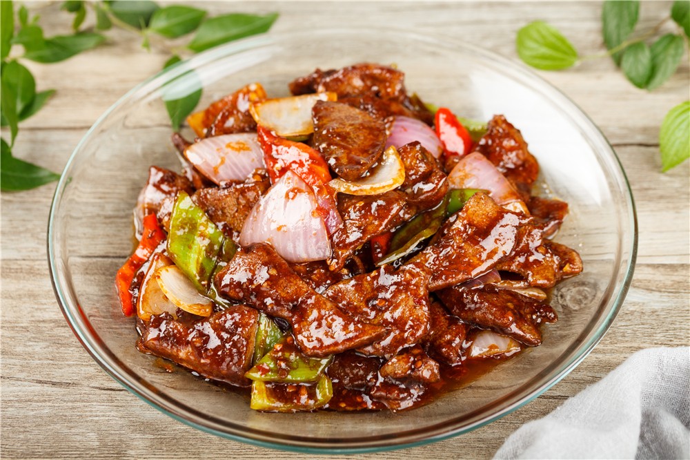 【调味料】槐茂甜面酱、槐茂料酒、猪肝、青红椒、洋葱、葱姜蒜